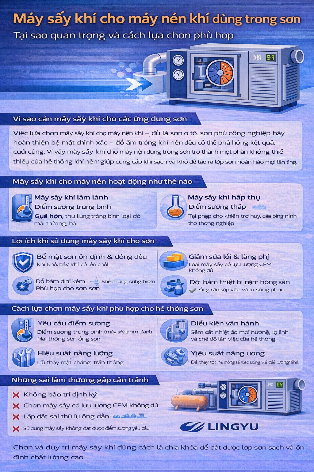 Máy sấy khí cho máy nén dùng trong sơn: Tại sao quan trọng và cách lựa chọn phù hợp