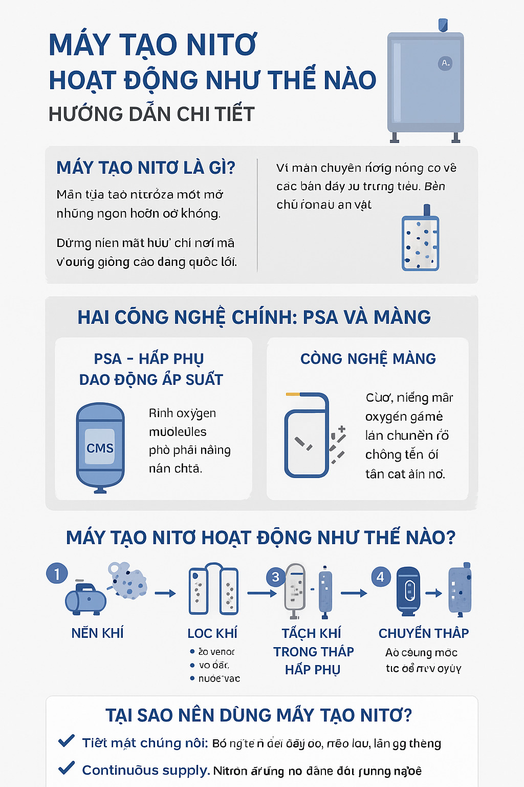 Nitơ đóng vai trò quan trọng trong vô số ngành công nghiệp—từ đóng gói thực phẩm, sản xuất điện tử đến dược phẩm và gia