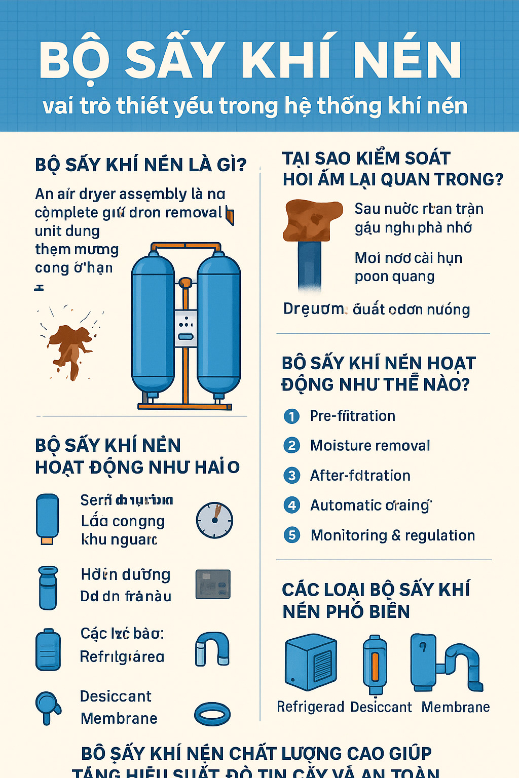 Trong bất kỳ hệ thống khí nén nào, nguồn khí nén sạch và khô đóng vai trò cực kỳ quan trọng để bảo vệ thiết