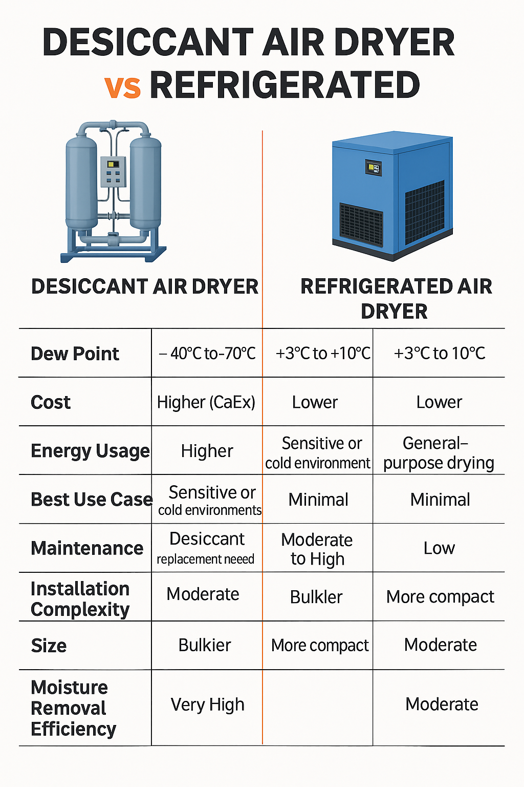 🔍 Chọn loại nào: Máy sấy khí hút ẩm hay máy sấy khí làm lạnh?