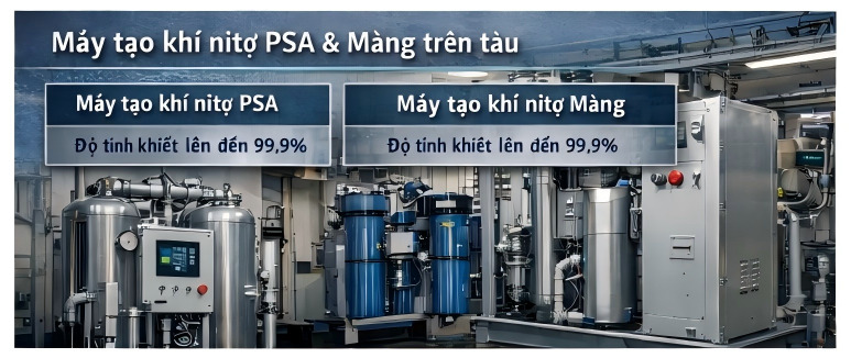 Việc lựa chọn giữa công nghệ PSA và công nghệ màng phụ thuộc vào yêu cầu về độ tinh khiết nitơ của tàu, không gian lắp đặt sẵn có, điều kiện vận hành và mục đích sử dụng.